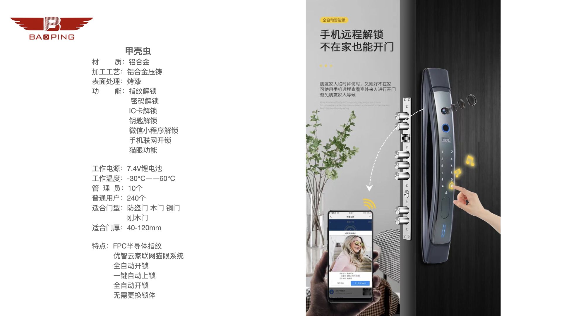 时尚外观,最新指纹方案+优智云家联网猫眼系统!